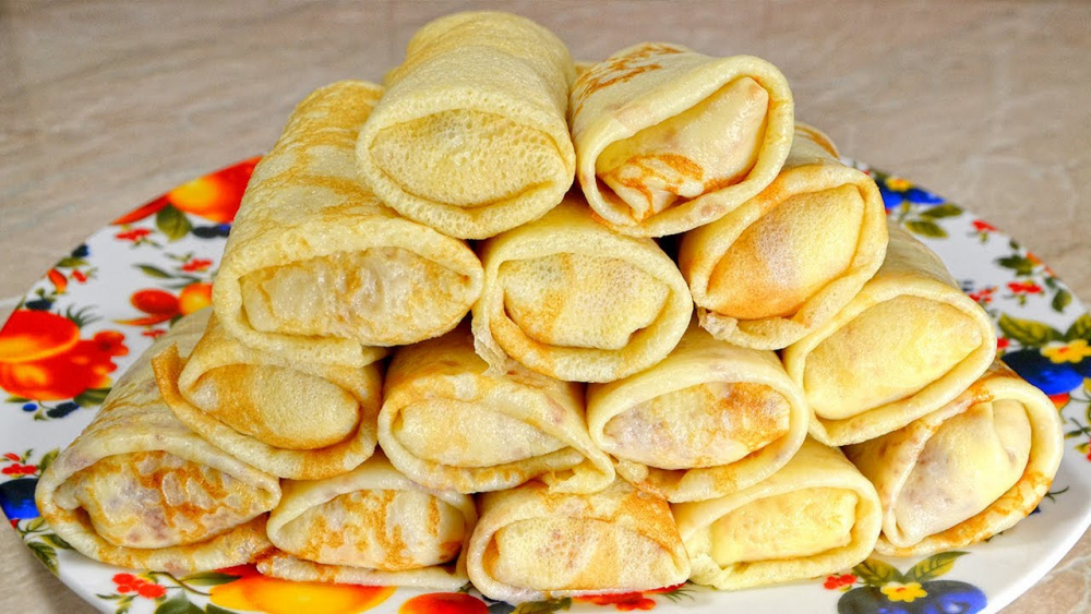 - Перед подачей обжариваем фаршированные блины на сливочном масле. Подаем со сметаной.