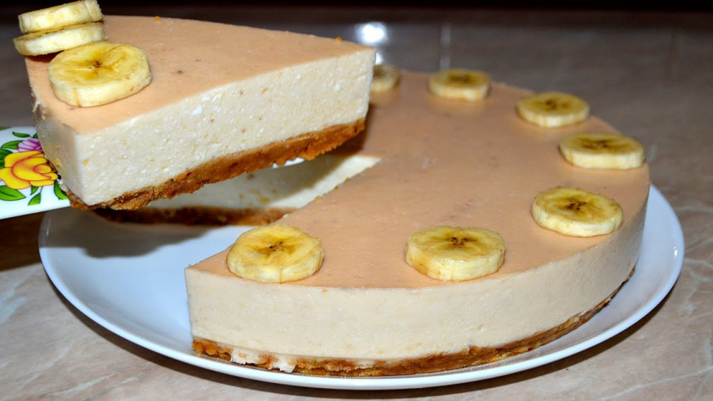 Чизкейк без выпечки с творогом, печеньем, бананом и желатином - Видео-рецепт