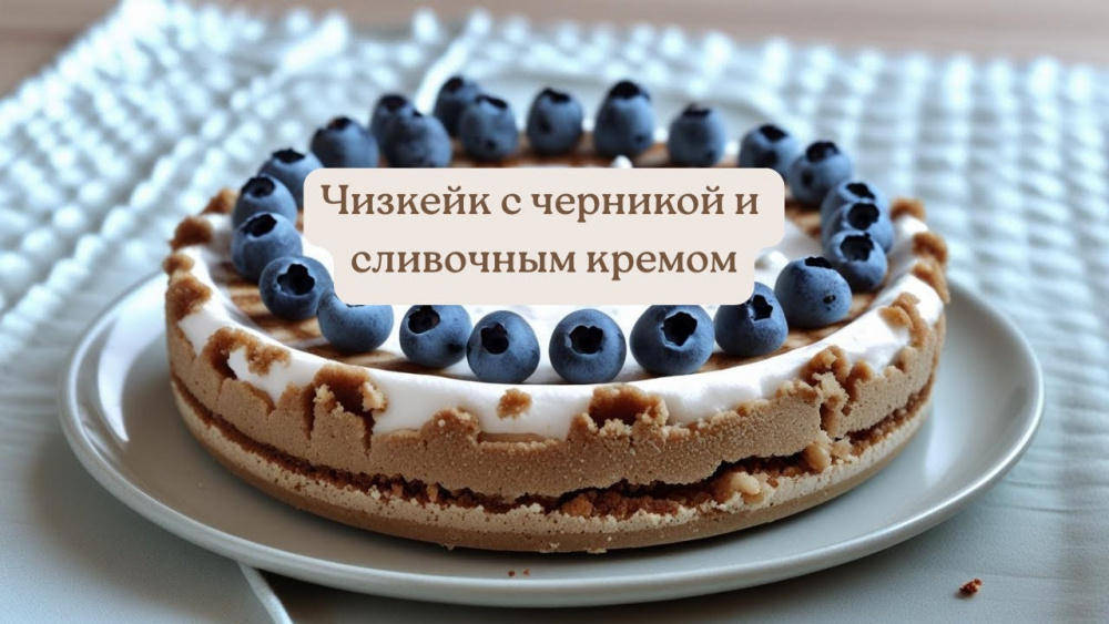 Чизкейк со сливочным кремом, голубикой и домашним печеньем - Видео-рецепт