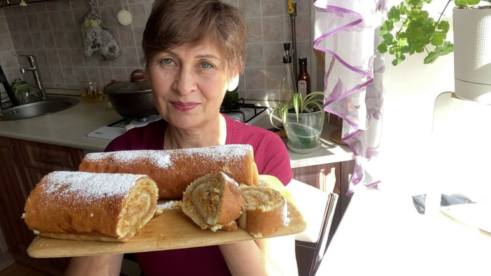 Огромный ЯБЛОЧНЫЙ рулет - Видео-рецепт
