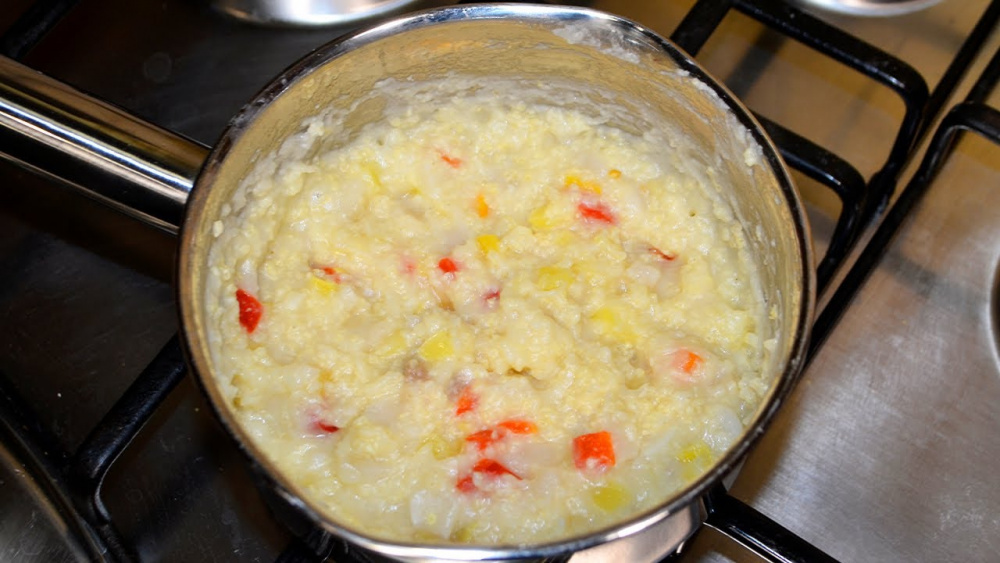 - Варим пшено на мелком огне 15 минут, постоянно помешивая.