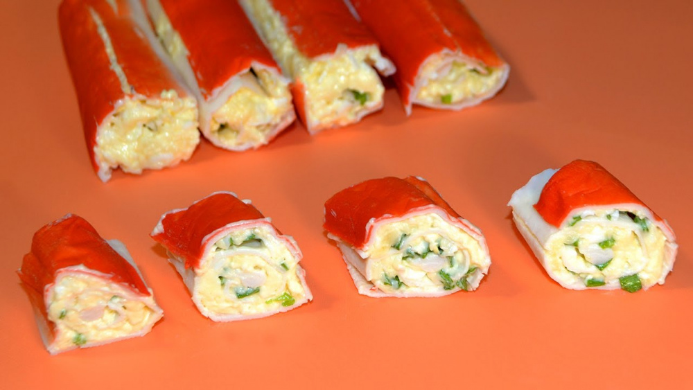 В видео показан рецепт, как приготовить рулет из крабовых палочек с яйцом, сыром, чесноком и плавленым сыром. Простая закуска, готовится очень быстро. Все продукт в рецепте идеально сочетаются между собой.