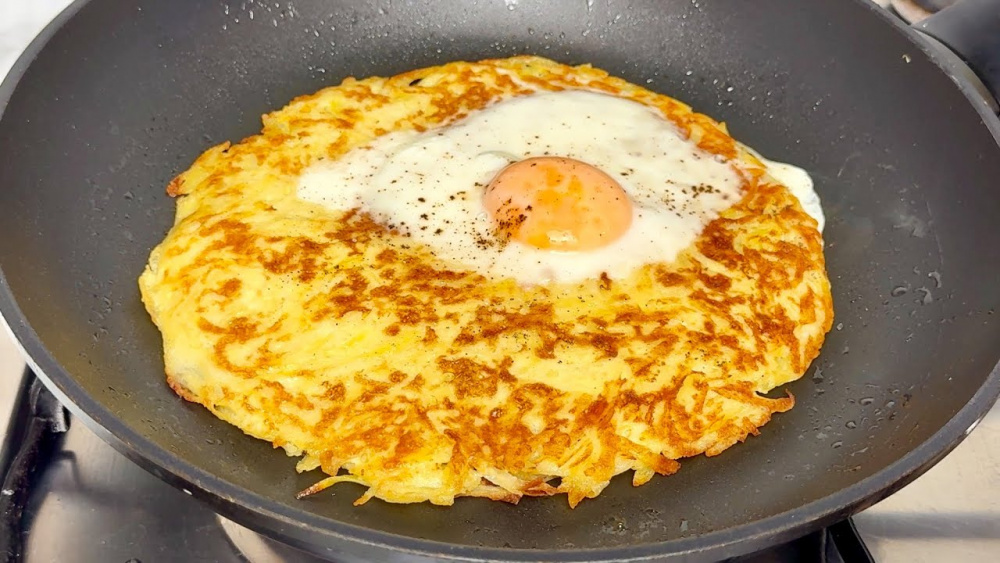 Когда нахожу дома картошку и 2 яйца, готовлю этот простой и быстрый завтрак или ужин за 5 минут! Просто натрите 2 картошки и добавьте 2 яйца. Никто не верит, что я готовлю его так просто. Вкуснее, чем пирог! Экономный рецепт на скорую руку на сковороде. Съедят за минуту!
